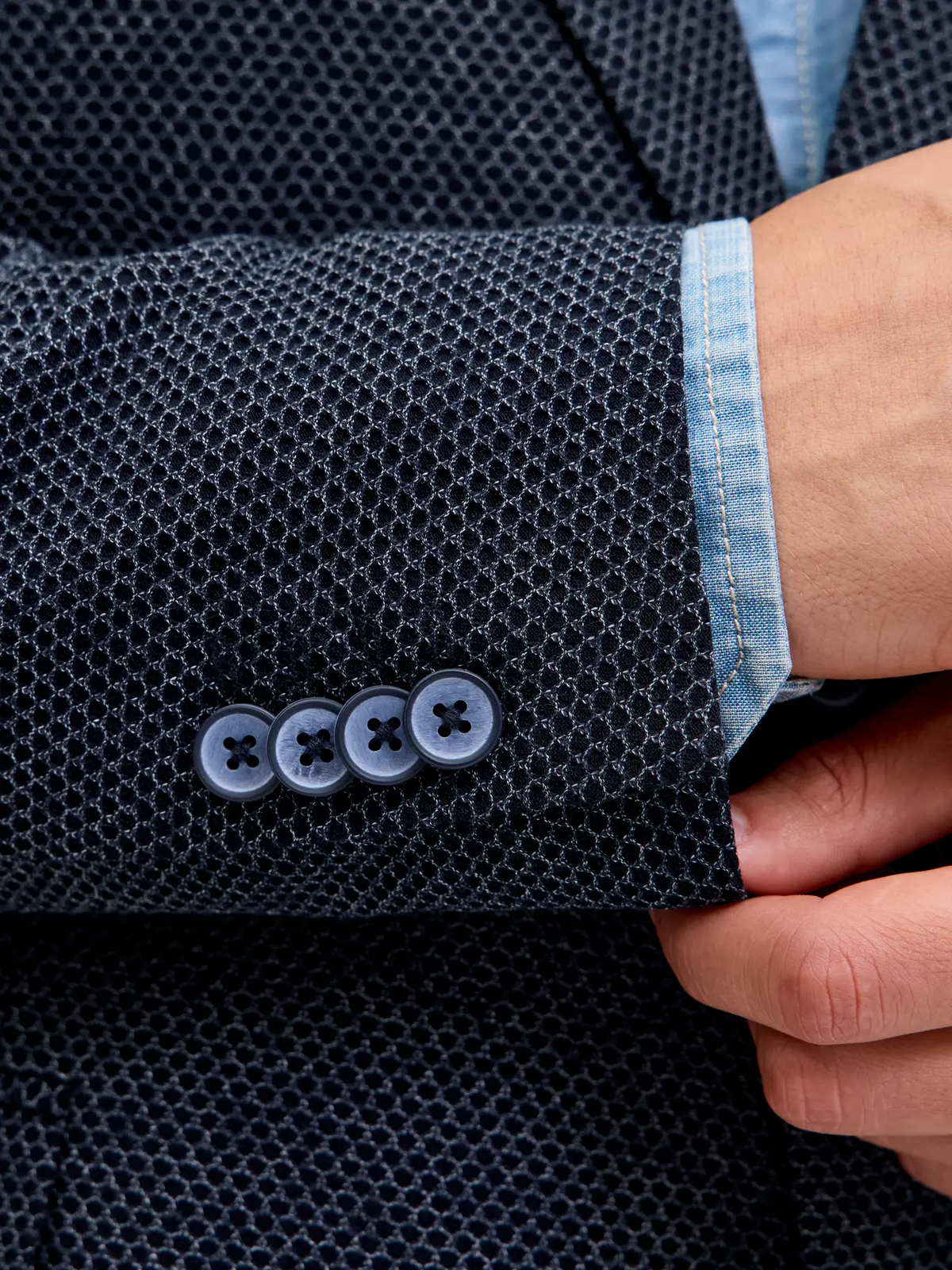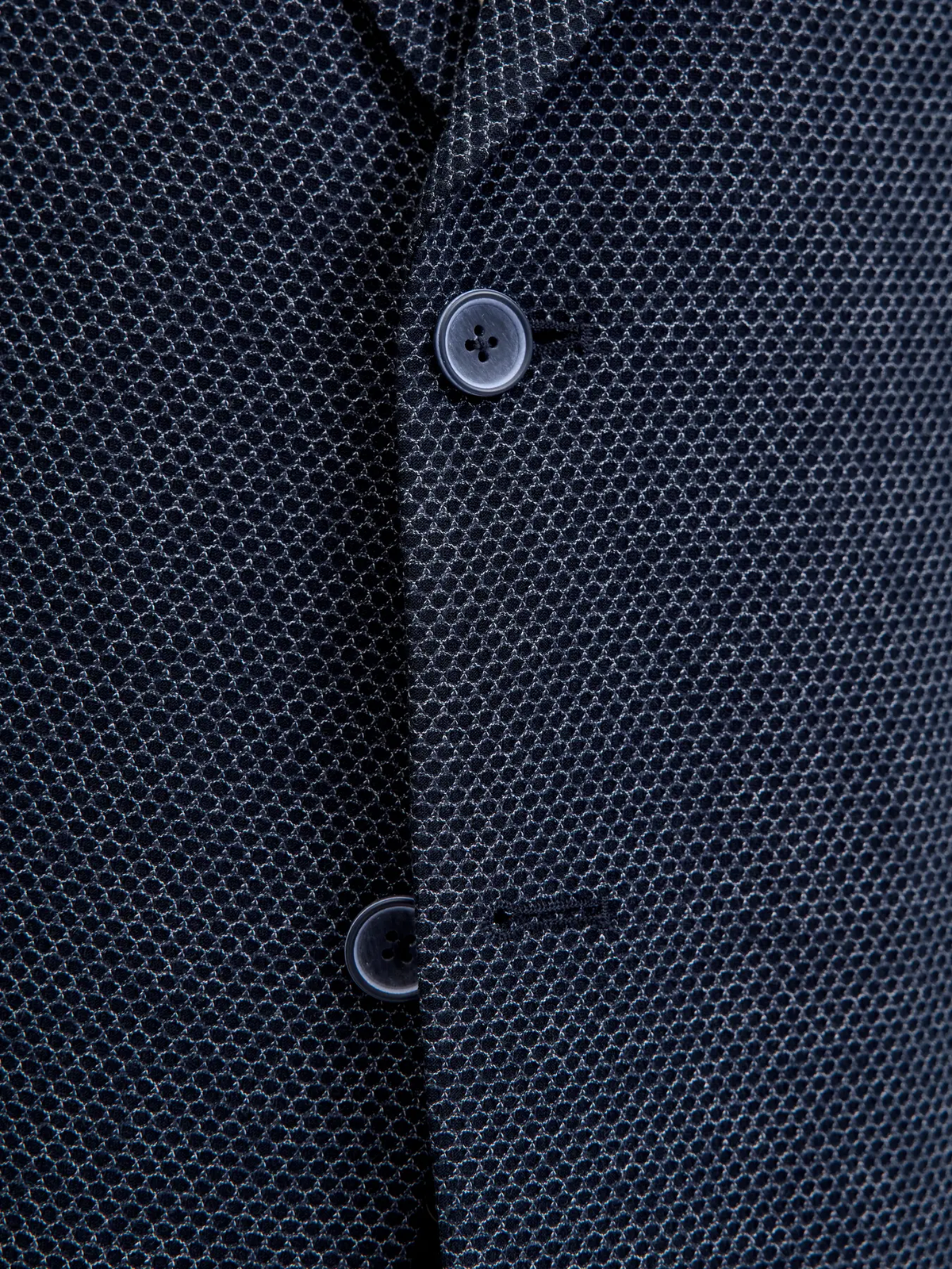 Americana de 2 botones con muestra pequeña. De color azul marino. Con botonadura al tono. De patronaje ajustado. Tejido elástico y de tacto suave y agradable. Tejido de buena calidad y fácil lavado. Fabricado con procedimientos ecofreindly y respetuosos con el medio ambiente. Tradición y vanguardia, unidas de la mano. Ultraversatilidad y polivalencia, para tus más variados looks. Además es una prenda que siempre te aportará una elegancia y una imagen contemporánea a tus looks. Máxima comodiad y comfort para tu día a día. Y con una relación calidad - precio realmente espectacular! Acertarás con la compra! Estilo casualwear.<br/><br/>