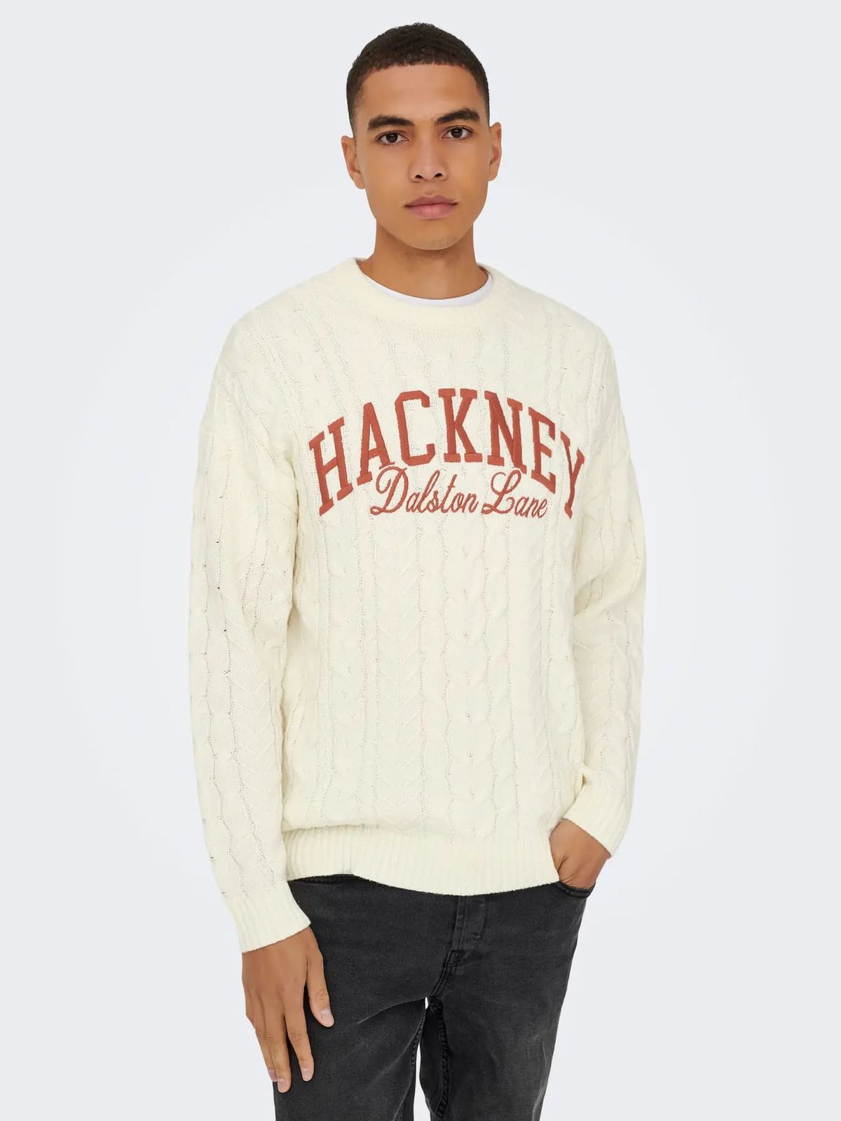 Jersey de cuello redondo trenzas Only & Sons Egret